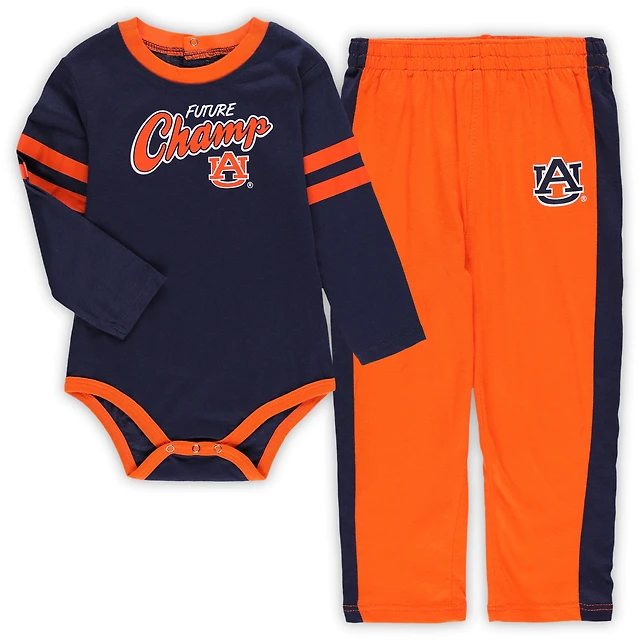 Infant Navy/Orange Auburn Tigers Little Kicker Long Sleeve Bodysuit and Sweatpants Set