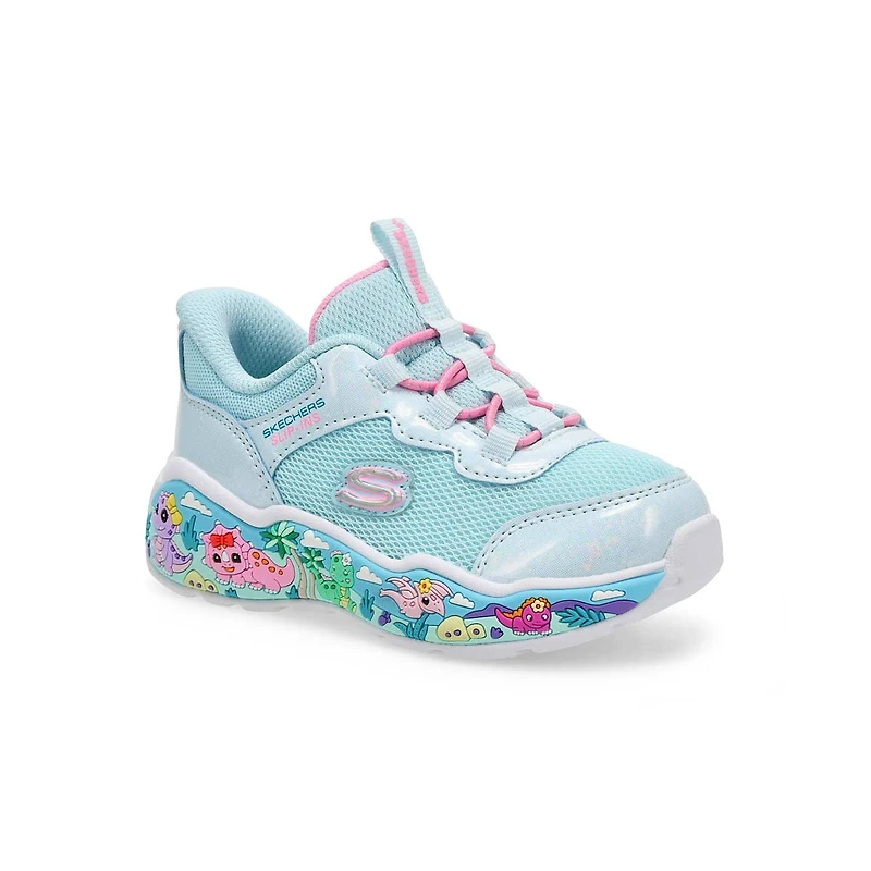 Add a little fun and convenient comfort to their routine with Hands Free Slip-ins: Play Scene Glitter Dreams sneaker from Skechers. Designed with Skechers' Heel Pillow, this thematic Skechers adaptive closure slip-on features a mesh and sparkly synthetic upper with fixed stretch laces, a Skechers Air-Cooled Memory Foam insole, and a well-cushioned midsole with playful graphics.