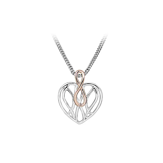 Infinity Heart Pendant in Silver and Rose Tone Sterling Silver with Chain