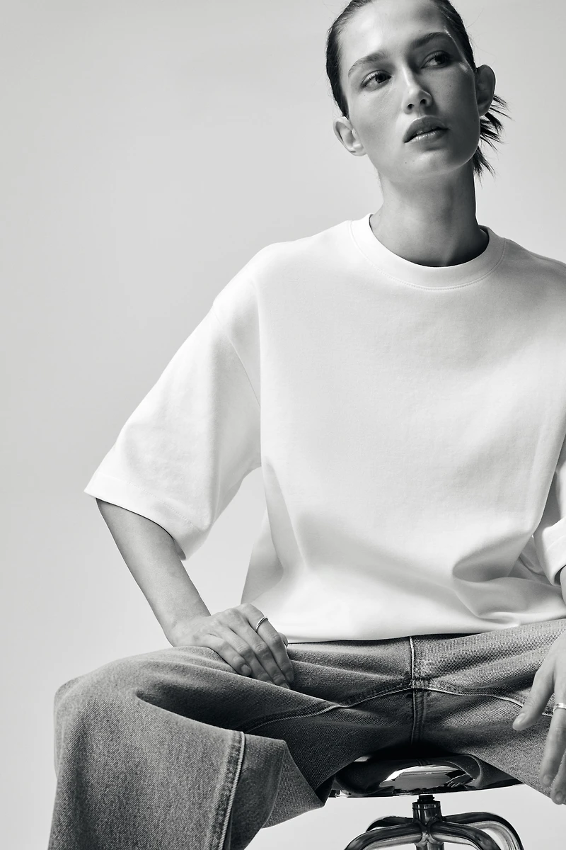 Loose-fit T-shirt in thick interlock jersey. Ribbed round neckline and dropped shoulders.