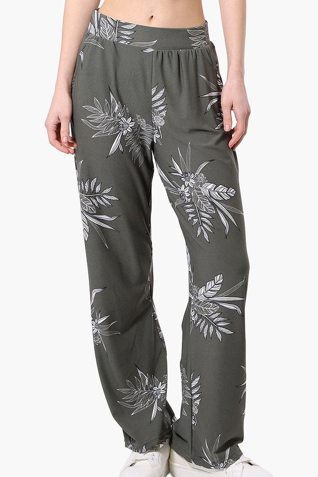 International INC Company Leaf Pattern Wide Leg Pants - Olive