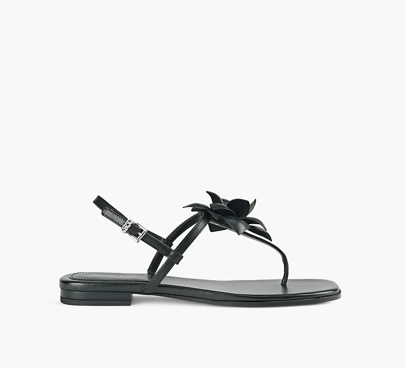- T-strap sandal with floral ornament