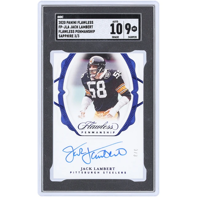 Jack Lambert Pittsburgh Steelers Autographed 2020 Panini Flawless Sapphire #FP-JLA #3/3 SGC Authenticated 9/10 Card