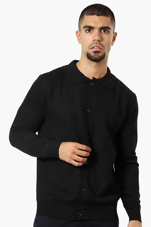 Jay Y. Ko Button Up Diamond Texture Cardigan - Black