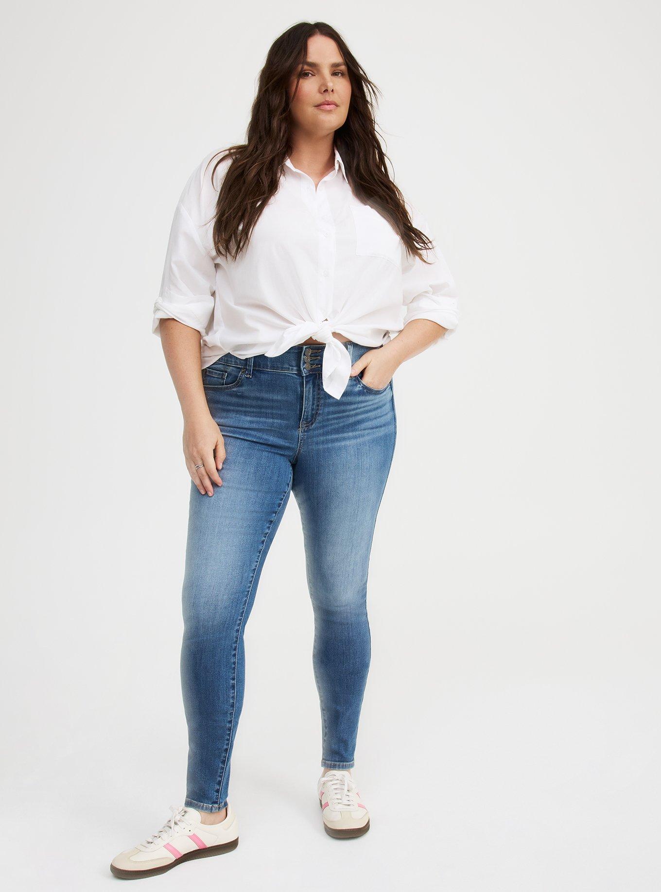 FIT High rise. Super skinny fit from hip to ankle. Perfect for every body shape. Inseams: Ex-Short 25'', Short 27'', Regular 29'', Tall 31'', Ex-Tall 33''. MATERIALS + CARE Super Soft Denim: Extraordinary stretch with a buttery brushed feeling soft enough to sleep in (and we have!). Stretch level: High. 65% cotton, 20% rayon, 13% polyester, 2% spandex. Machine wash cold, inside out. Tumble dry low. Imported. DETAILS 3-button waistband for a little smoothing. 5-pocket design. WHY WE LOVE IT Our Jegging is super skinny and super stretchy—so when you button up its signature 3-button waistband, you know you're going to be super comfortable.