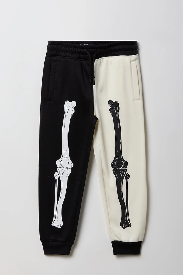 Jogger en molleton à imprimé de squelette deux tons pour enfants
