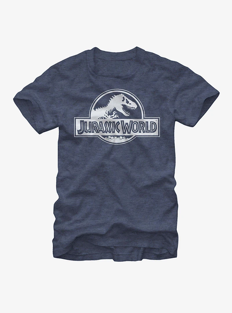 Never go out of style with this grey Jurassic World tee featuring the classic logo in black. Don't feed any dinosaurs!