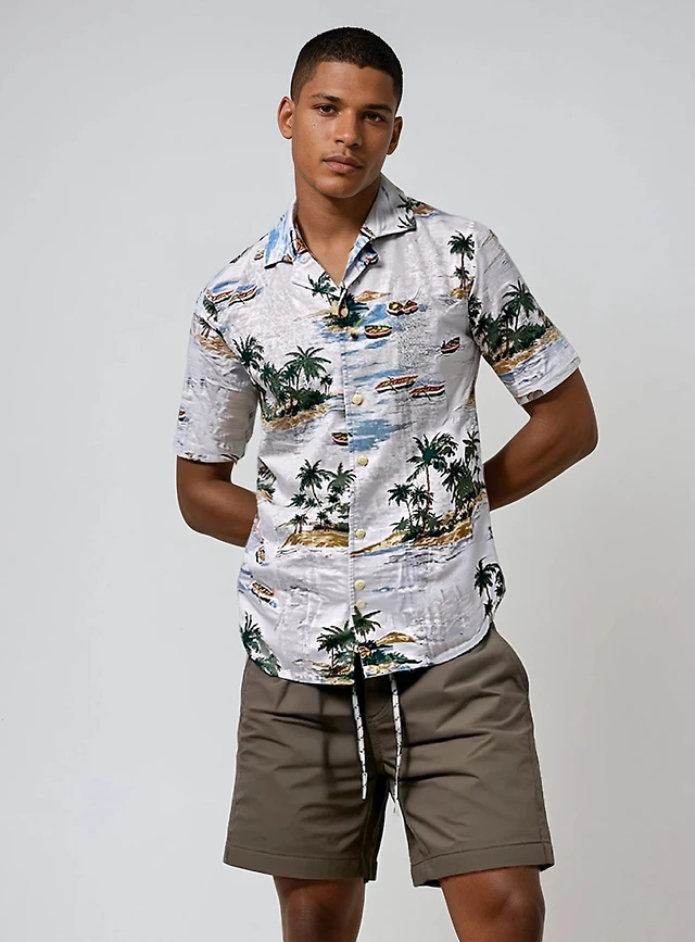 Palm Print Shirt Dress