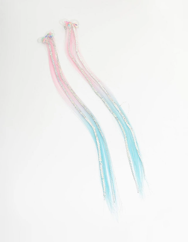 Kids Pink & Blue Faux Hair Butterfly Shaker Clips 2-Pack