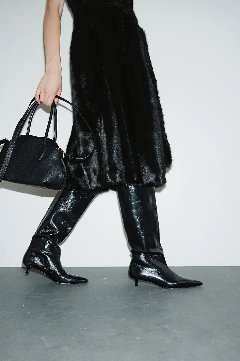 Boots in soft leather. Pointed toes, slouchy legs, and kitten heels. Jersey lining and leather insoles.