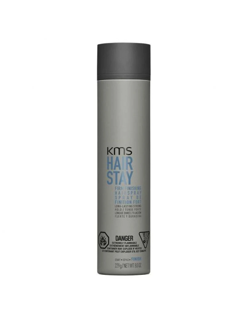 KMS HairStay Firm Finishing Spray - 250g KMS HairStay Firm Finishing Spray is a fast-drying hairspray that provides a strong hold without leaving any residue or causing flaking. It offers a firm hold that keeps your hairstyle in place all day long, without the uncomfortable crunchiness that some hairsprays can create. This hairspray allows for easy application and quick drying, giving you a reliable and long-lasting hold without compromising on flexibility and natural movement. Whether you're styling an updo, creating intricate hairstyles, or simply need your hair to stay put, HAIRSTAY Firm Finishing Spray delivers the strong hold you need with a lightweight feel.