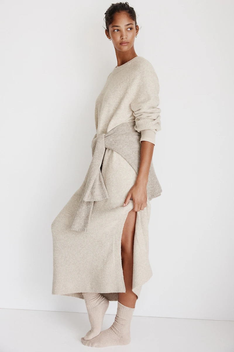Maxi dress in a soft knit. Crew neck, long raglan sleeves, and straight hem with a slit at one side. Ribbing at neck, cuffs, and hem.