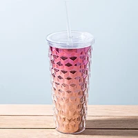 KSP Ombre Double Wall Tumbler with Straw (Pink-Peach)