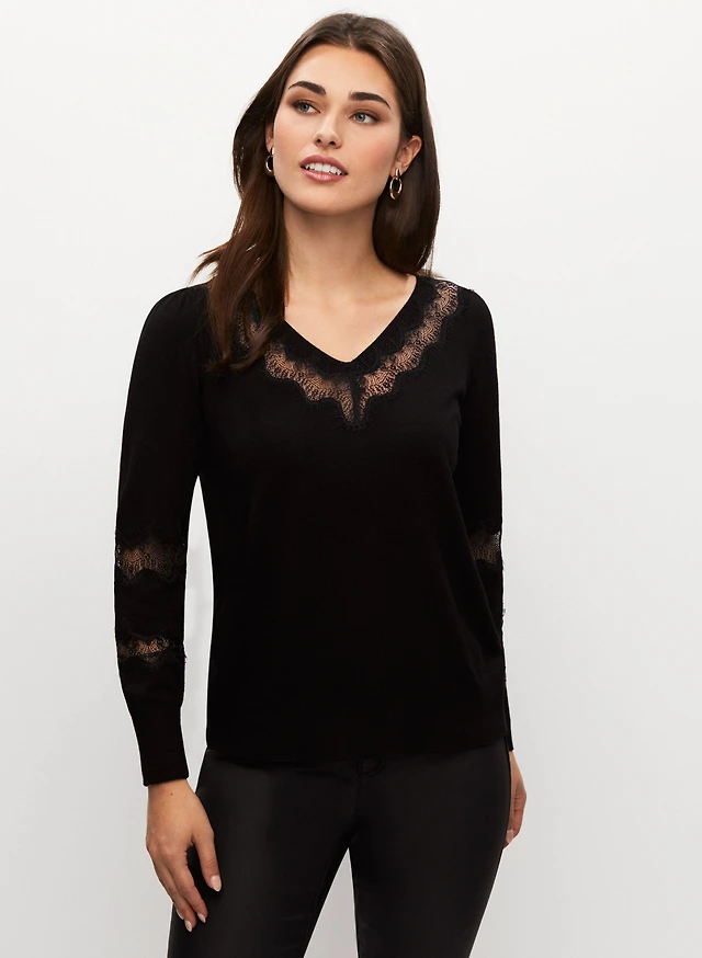 Lace Insert Long Sleeve Top