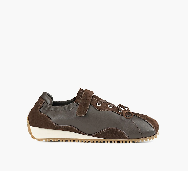 Mimosa has never been much one for traditional designs, and the label's Lanson sneakers are no exception. Putting its eccentic spin on a sporty icon, the brand imagines this pair from lightweight leather and paneled suede. An elasticated cuff facilitates their slip-on demeanour, while a slim cushioned sole puts a bounce in every step. Plus, they're fastened with both sleek laces and a sturdy velcro strap, ensuring a super secure fit when you're on the go.
