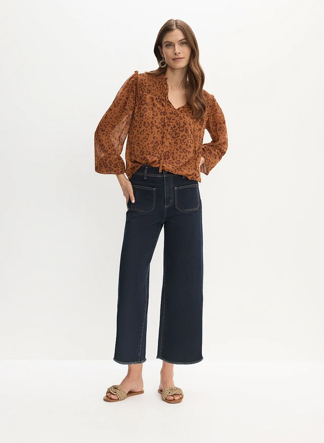 Leopard Print Blouse & Wide Leg Culotte Jeans