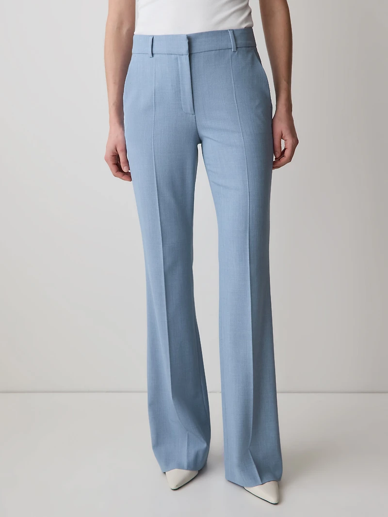 A timeless long flare-leg pant is a must in a wardrobe. Made in a stretch fabric that ensures all-day comfort, this pair of high-rise pants offered in light blue will provide you with a great statement style. Matching blazer available.