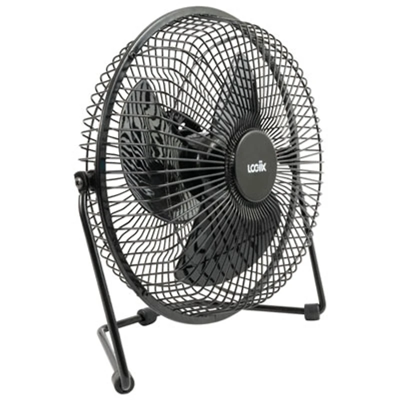 Stay cool in style with the LOGiiX USB retro desk fan. This 10-inch fan delivers optimal ventilation for personal desktops. Its 8-inch blade ensures efficient airflow. The 180-degree oscillation and anti-slip pads keep the fan securely in place. It comes with a 5ft. USB-A cable for hassle-free use. Compact and lightweight, it fits effortlessly on any desk. | LOGiiX USB Retro Desk Fan - 10" - Black