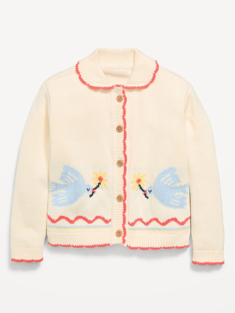 Long-Sleeve Scalloped Trim Cardigan Sweater for Toddler Girls