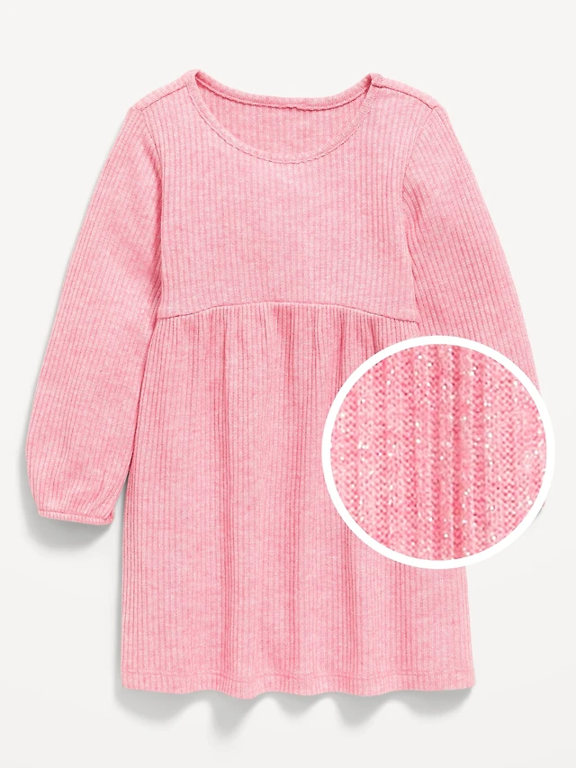 Long-Sleeve Shiny Ribbed Dress for Toddler Girls