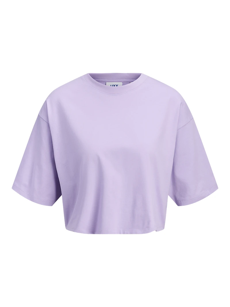 This basic T-shirt is a wardrobe essential that works well with jeans, shorts, and trousers. Combed jersey is stretchy and has a soft feel, perfect for everyday wear. - Product Type : T-shirt - Neck : Round neck - Sleeve : Short sleeves - Length/size : Cropped - Fit : Loose Fit