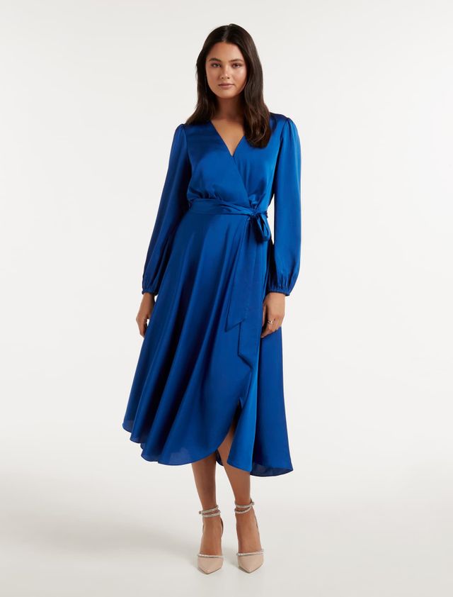 Marilyn Satin Wrap Midi Dress