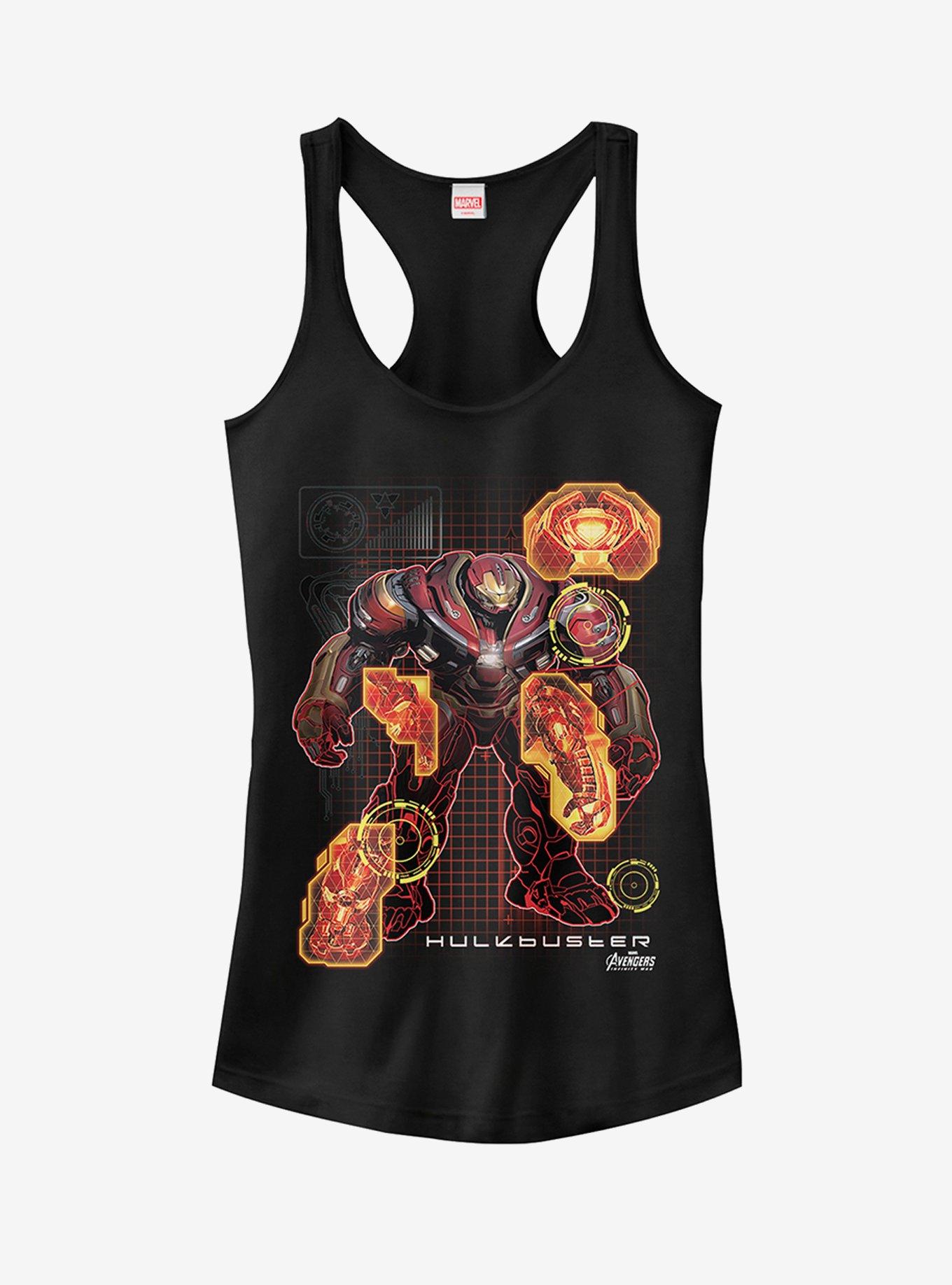 Who's behind the Hulkbuster suit and who's going to be wearing the Marvel Avengers: Infinity War Hulkbuster Schematic Juniors' Racerback Tank Top? You! A schematic detail print portrays the Hulkbuster across this fitted Infinity War tank top.