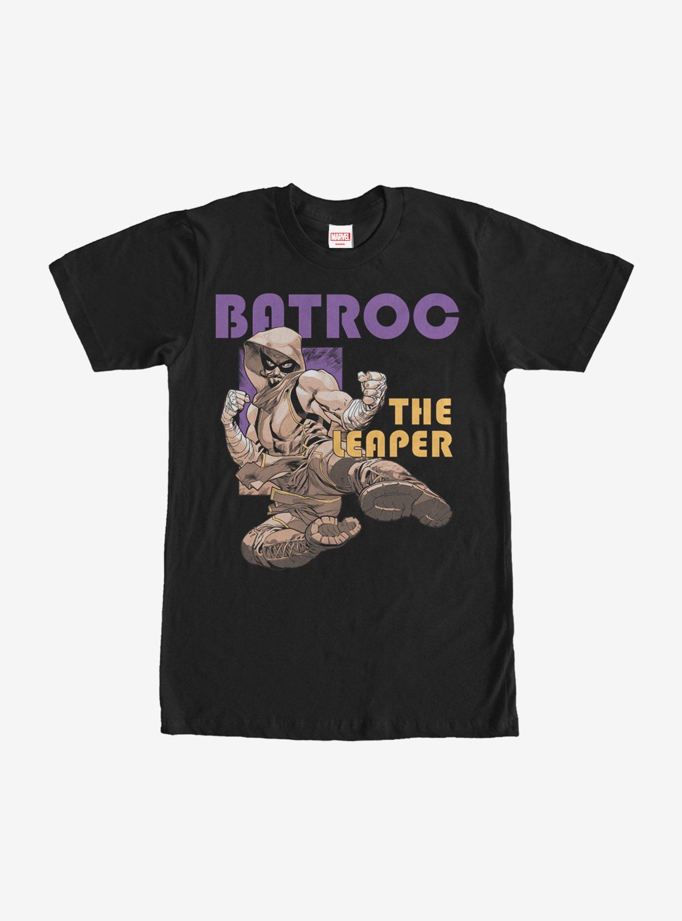 Georges Batroc is kicking is way off the Marvel Batroc the Leaper Black T-Shirt! Known for his skill in the savate form of kickboxing, Batroc appears to be leaping off of this black Batroc shirt. 100% Cotton.
