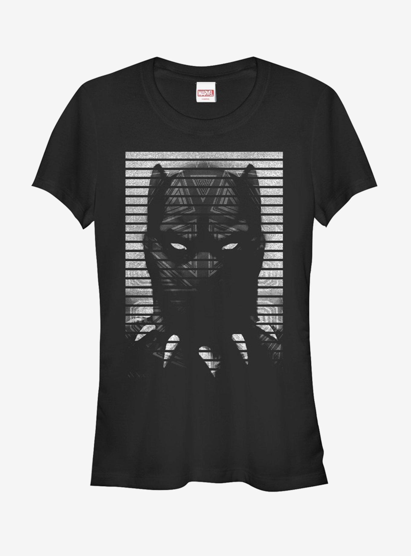 The Black Panther has all sorts of hidden talents but did you know that great fashion like the Marvel Black Panther Striped Profile Juniors' Racerback Tank Top was one of them?! Distressed white stripes shape the Wakandan King's face on this classic black and white print Black Panther tank top. Runs small, size up.