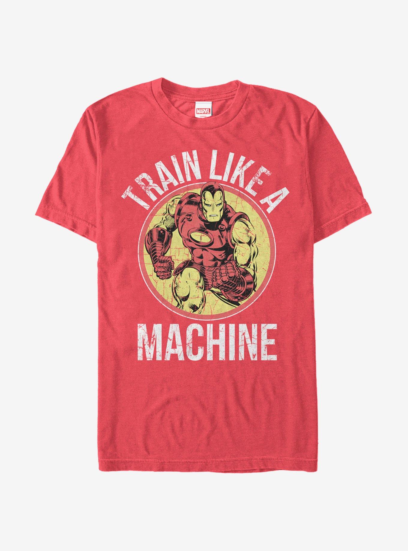 It's time to step up and be the superhero you know you can be with the Marvel Iron Man Train Like a Machine Red T-Shirt. Iron Man is front and center on this red Iron Man shirt with "Train Like A Machine" written in distressed white print around him. 100% Cotton.