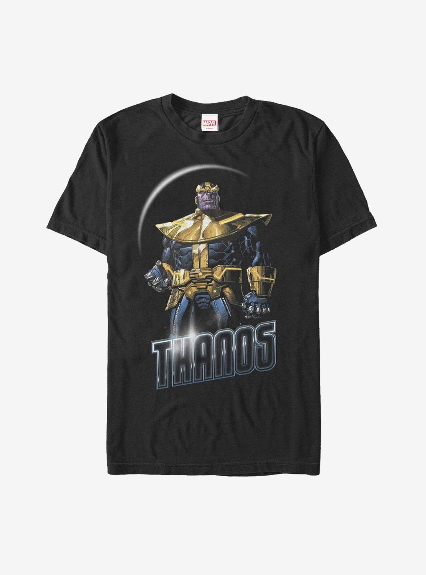 Thanos is in love with Mistress Death but it's this tee from Marvel that has stolen our heart! The powerful and terrifying Overmaster stands with a sliver of the moon encircling him and "Thanos" on this T-shirt from Avengers: Infinity War .