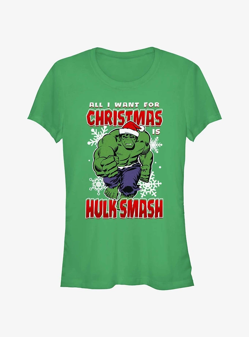 Marvel The Hulk Christmas Hulk Smash Girls T-Shirt
