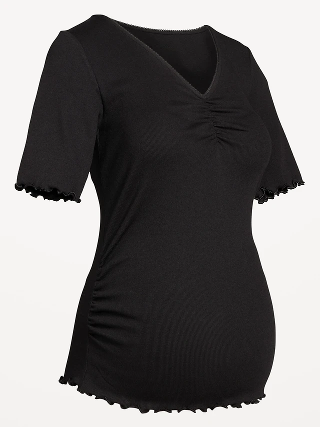 Maternity V-Neck Elbow-Sleeve Top
