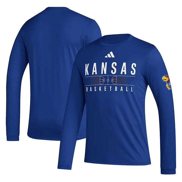 Men's adidas Royal Kansas Jayhawks Practice Basketball Pregame AEROREADY Long Sleeve T-Shirt