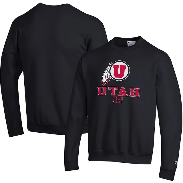 Men's Champion Black Utah Utes Team Stack Powerblend Pullover Sweatshirt