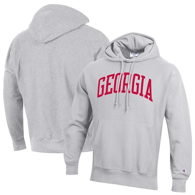 Men's Champion Heathered Gray Georgia Bulldogs Team Arch Reverse Weave Pullover Hoodie