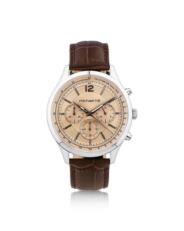 Men's Chronograph Watch in Stainless Steel & Brown Leather