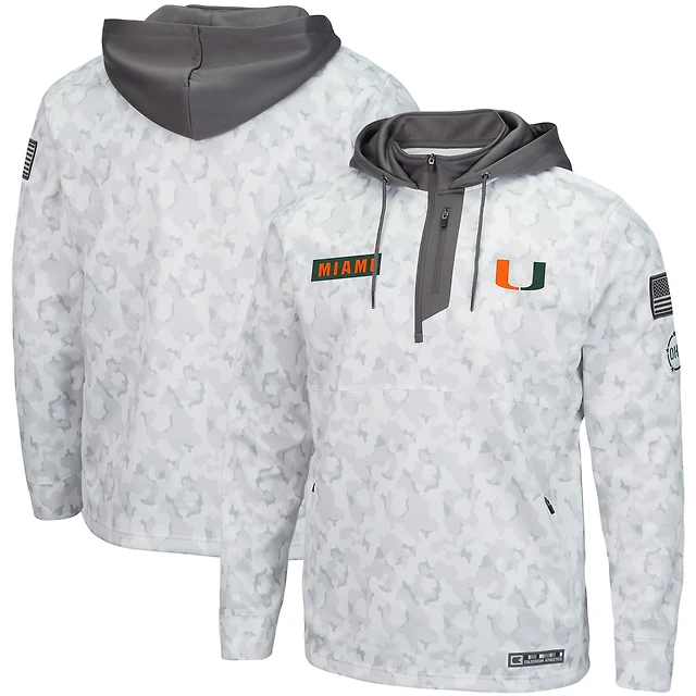 Men's Colosseum Arctic Camo Miami Hurricanes OHT Military Appreciation Quarter-Zip Hoodie