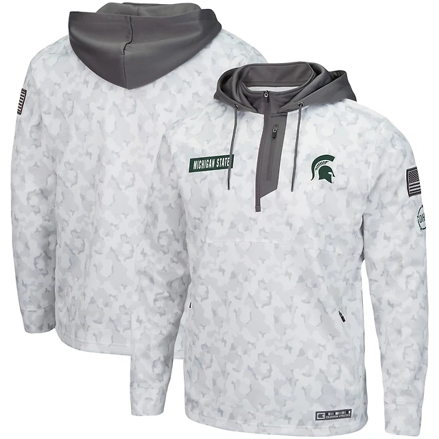 Men's Colosseum Arctic Camo Michigan State Spartans OHT Military Appreciation Quarter-Zip Hoodie