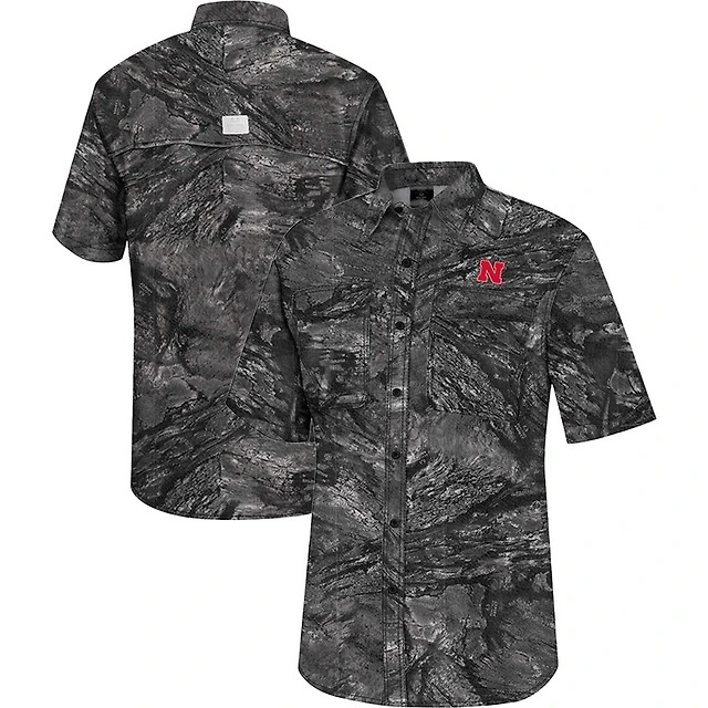Men's Colosseum Charcoal Nebraska Huskers Realtree Aspect Charter Full-Button Fishing Shirt