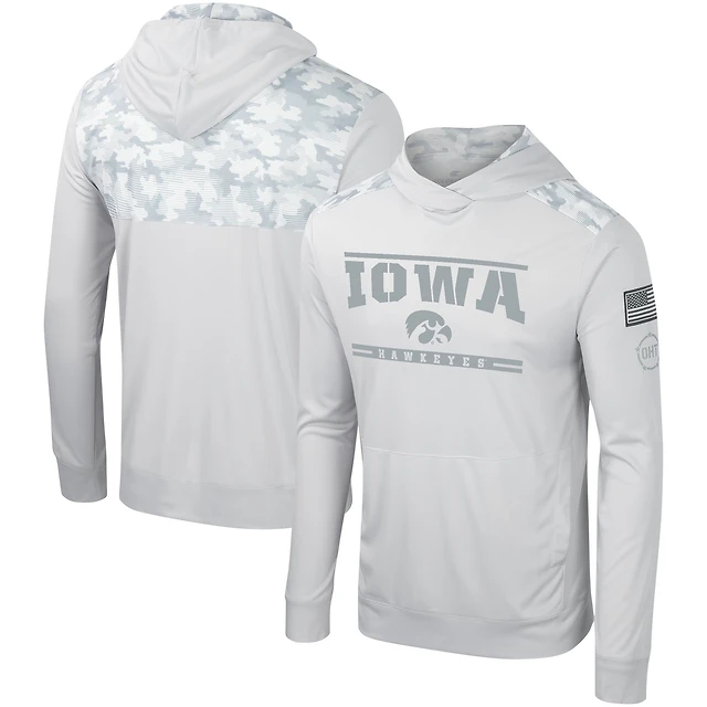 Men's Colosseum Gray Iowa Hawkeyes OHT Military Appreciation Long Sleeve Hoodie T-Shirt