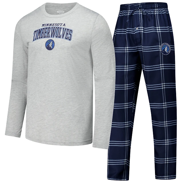 Men's Concepts Sport Navy Minnesota Timberwolves Petition Long Sleeve T-Shirt and Plaid Pant Set