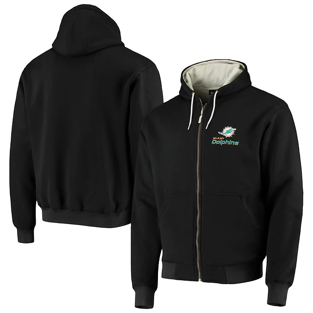 Men's Dunbrooke Black Miami Dolphins Craftsman Thermal-Lined Full-Zip Hoodie