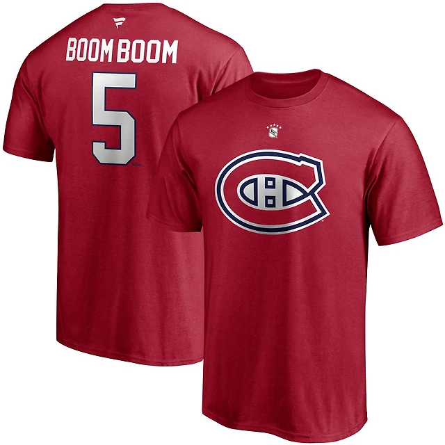 Men's Fanatics Bernie Geoffrion Red Montreal Canadiens Authentic Stack Retired Player Name & Number - T-Shirt