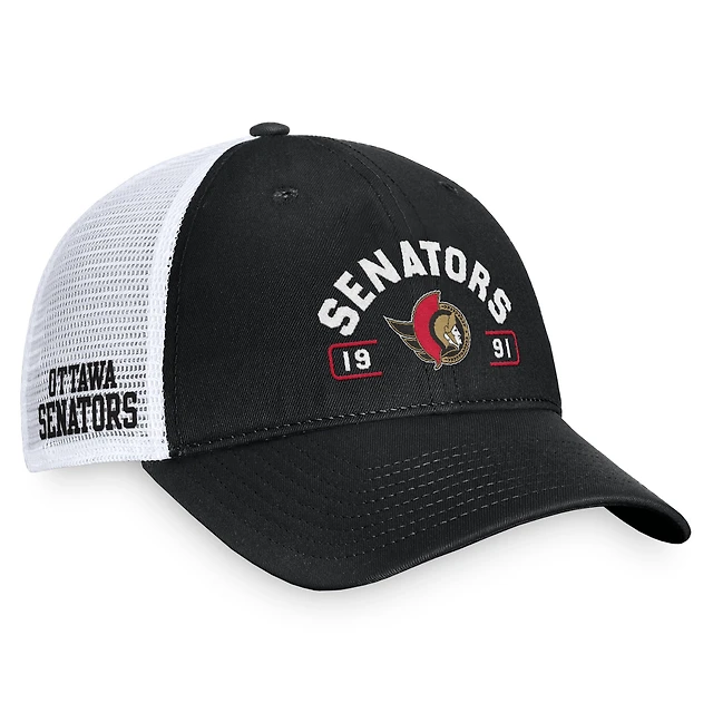 Men's Fanatics Black/White Ottawa Senators Free Kick Trucker Adjustable Hat