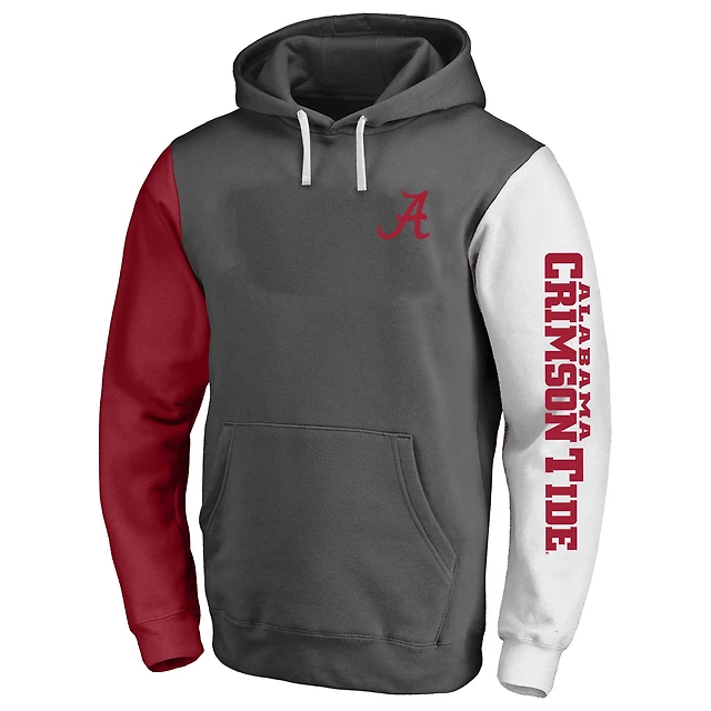 Men's Fanatics Charcoal Alabama Crimson Tide Big & Tall Contrast Sleeves Pullover Hoodie