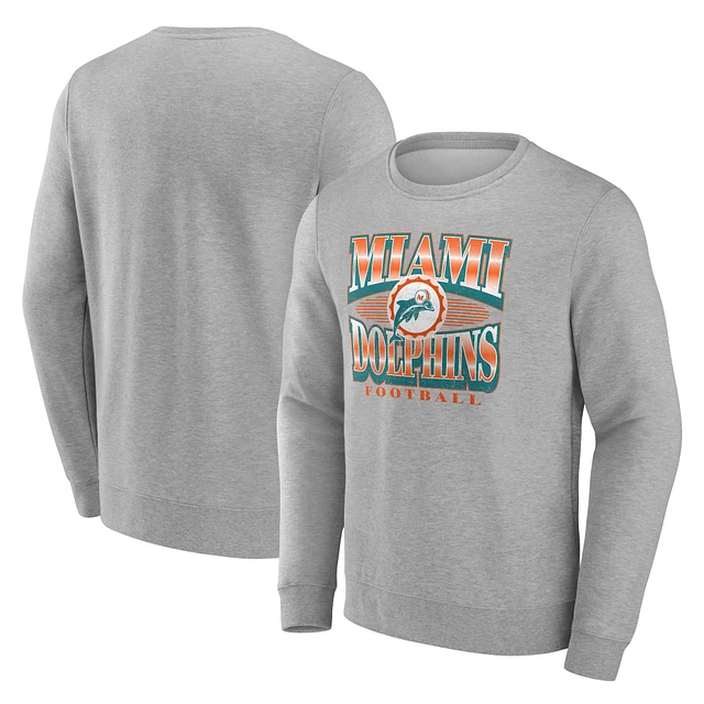 Men's Fanatics Heather Gray Miami Dolphins Chance Throwback Fleece Pullover Sweatshirt