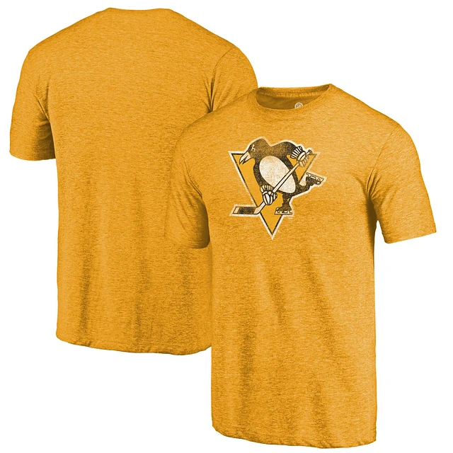 Men's Fanatics Heathered Gold Pittsburgh Penguins Primary Logo Tri-Blend T-Shirt