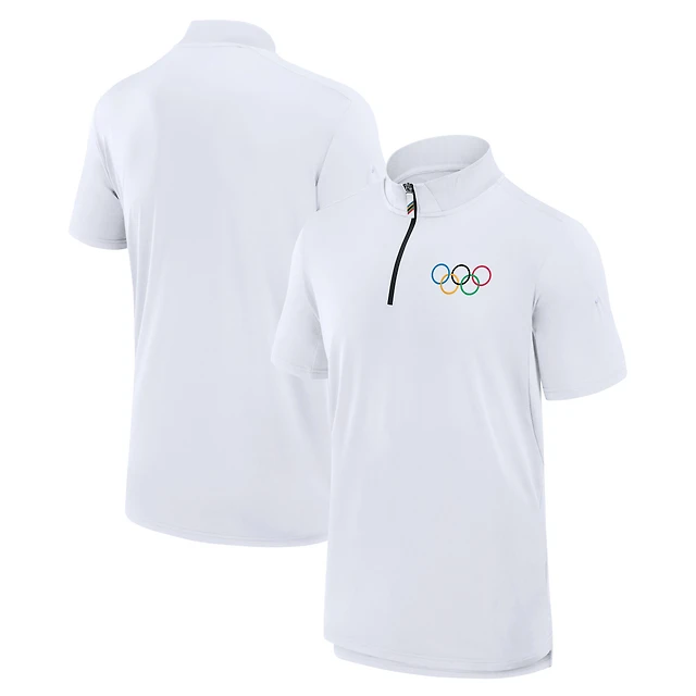 Men's Fanatics White Olympic Games Union Bar Quarter-Zip Polo