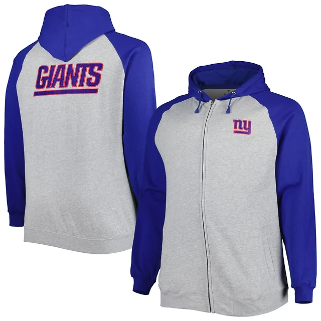 Men's Heather Gray New York Giants Big & Tall Fleece Raglan Full-Zip Hoodie Jacket
